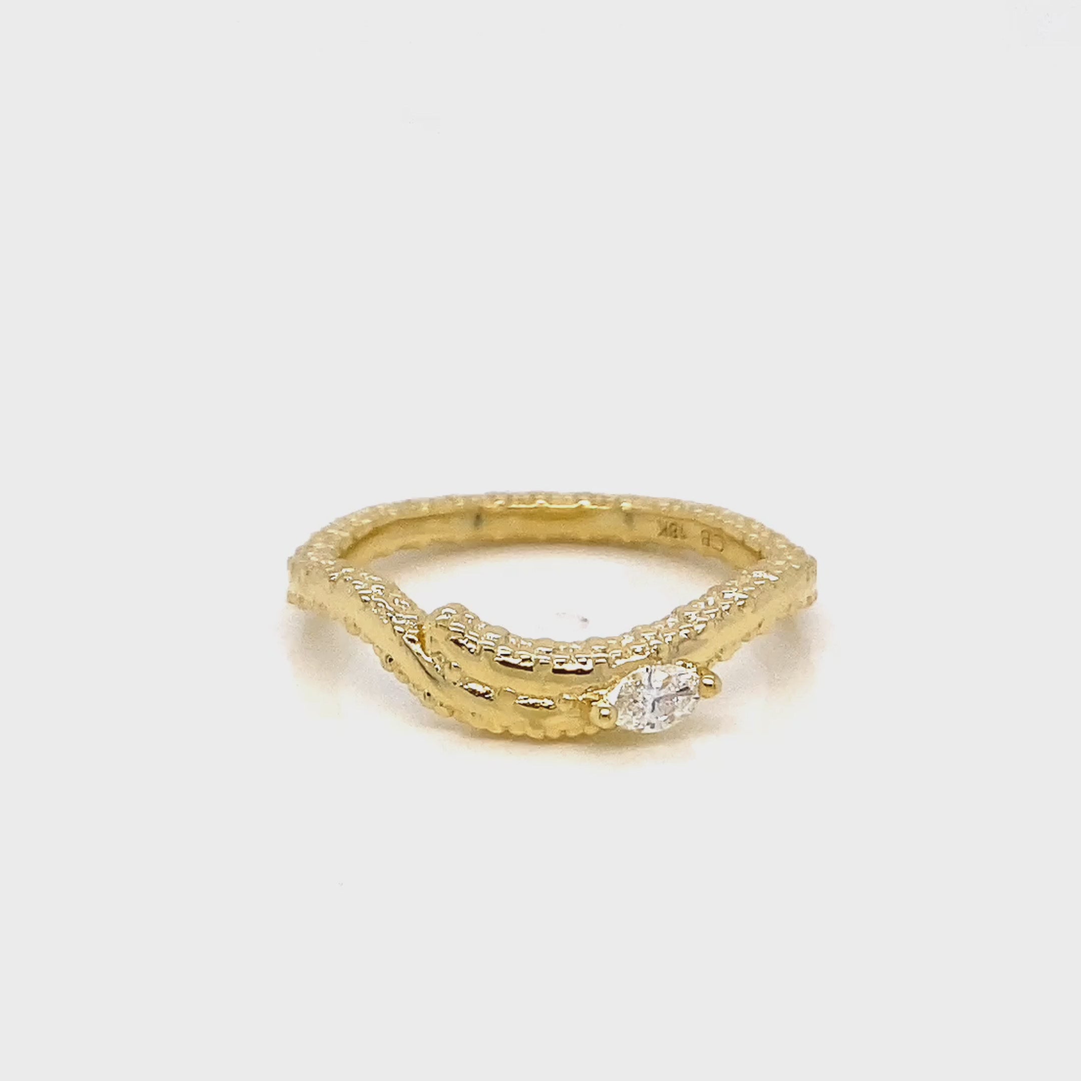 18K Yellow Gold Double Swirl Women's Ring with Marquise Diamond and Flower Beads