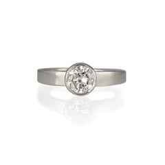 - one bezel set 0.72 carat brilliant cut diamond with H/SI1 color and clarity