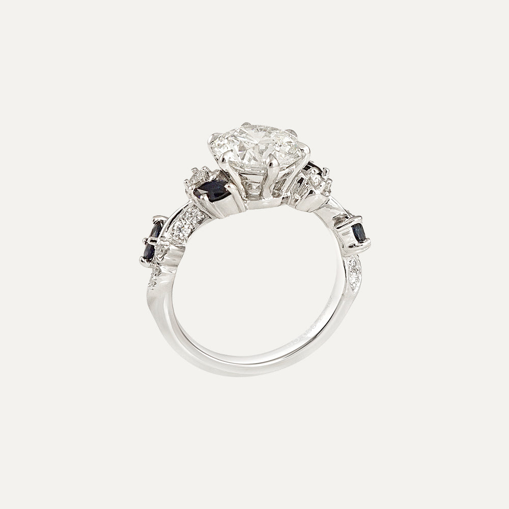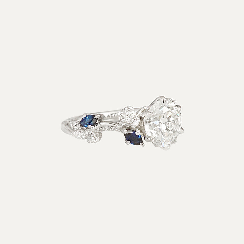 Diamond and Sapphire Vine Engagement Ring for Kaeshini